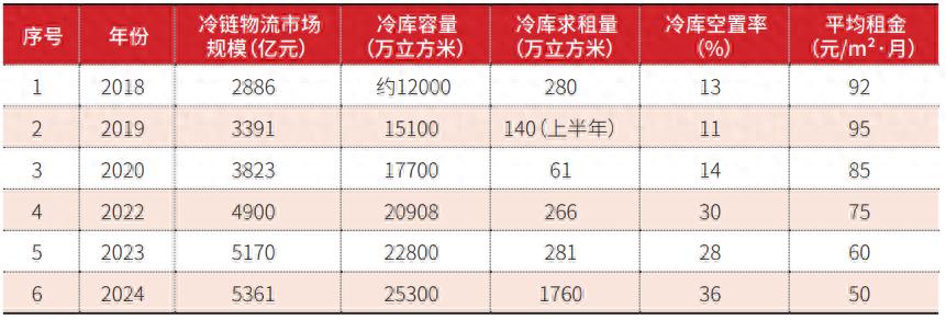 中国冷库出租价钱,从2019年全国平均每平方米每月95元的高位,一下滑到现在全国平均每平方米每月50元。中国冷库的空置率,却从2018~2019年时11%的最低点一上升到2024年的36%,这充实申明低价并没有换来增量,正在绝对铰剪差的环境下,冷库供应严沉超多供应是最大的问题所正在。